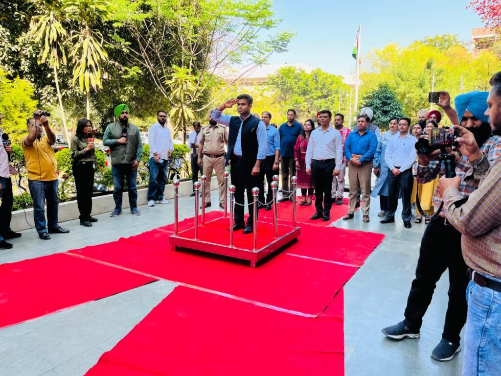 ਉਨ੍ਹਾਂ ਦੇ ਪਹੁੰਚਣ ‘ਤੇ, ਜੈਨ ਦਾ ਜ਼ਿਲ੍ਹਾ ਪ੍ਰਸ਼ਾਸਨ ਕੰਪਲੈਕਸ ਵਿਖੇ ਪੰਜਾਬ ਪੁਲਿਸ ਦੀ ਇੱਕ ਟੁਕੜੀ ਦੁਆਰਾ ਰਸਮੀ ਗਾਰਡ ਆਫ਼ ਆਨਰ ਨਾਲ ਸਵਾਗਤ ਕੀਤਾ ਗਿਆ।
